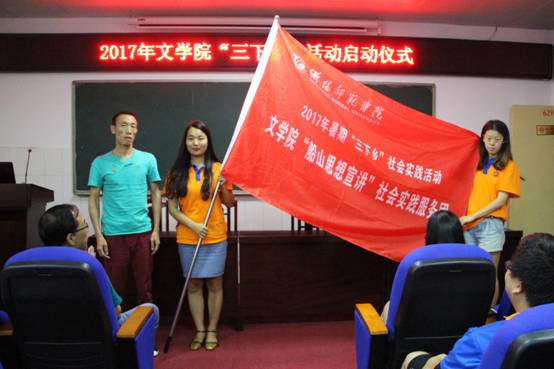 2017年beat365中国官方网站继续组织开展大学生志愿者暑期“三下乡”社会实践活动,beat365中国官方网站“三下乡”队伍,作为学校八个重点团队之–“传统文化调研团”,于7月1日上午,在文综楼D栋629报告厅隆重举行了“三下乡”活动启动仪式。湖南省船山学社首席专家朱迪光教授、beat365中国官方网站党总支书记邓玉久、副书记周新文、学生辅导员方慧出席,beat365中国官方网站“三下乡”团队全体成员以及部分学生代表参加本次启动仪式。由方慧老师主持启动仪式。
