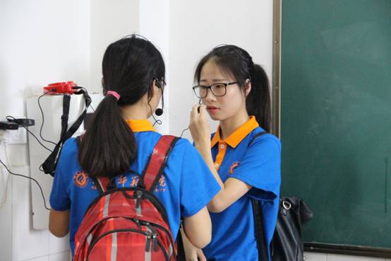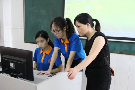 松市完小的蒋彩霞校长正与两位宣讲师一起,为上课做准备。