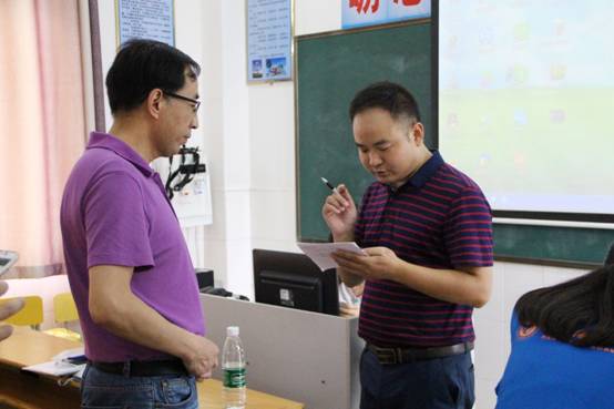 为了尽最大的努力配合beat365中国官方网站“船山思想宣讲”社会实践服务团的宣讲,松市完小的校长邹旺华正向我们的团队负责人——党总支书记邓玉久确认流程。