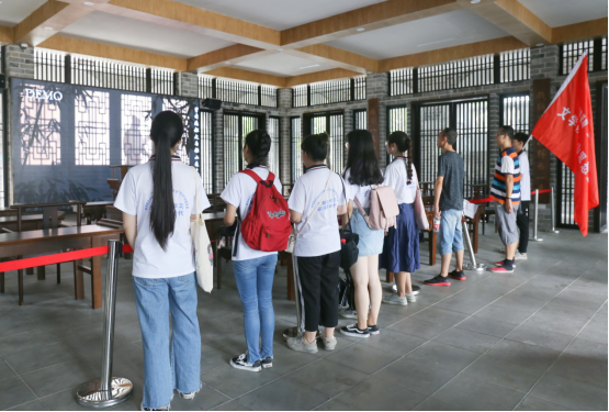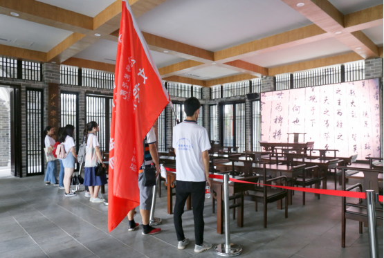 穿过大厅,走过长廊,宣讲团成员们一路行至书院内。古色古香的书院内,四面天窗透光,桌椅摆放整齐,尽管书院经过了后人们的加工与翻新,但纵观古色古香的陈设,依稀可见当年书院内学子奋笔疾书的身影。