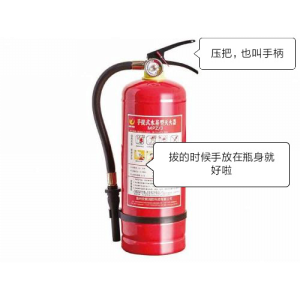 他提出,灭火器的使用应记住这三个步骤:“拔、瞄、压”。