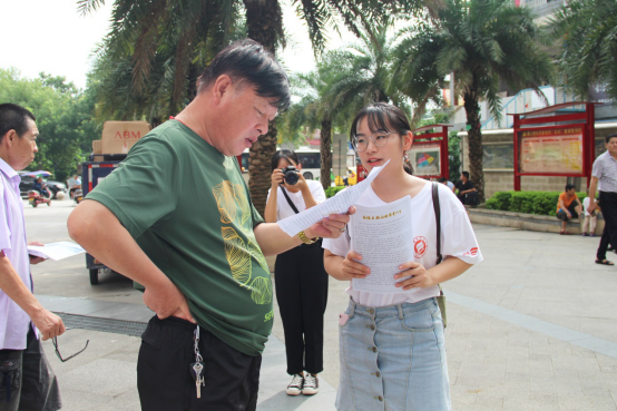 以面对面科普和群众宣讲形式来宣传船山思想,将弘扬中华优秀传统文化落到实处、落地生根,这也许是更好的让群众了解到船山思想的意义与时代追求的方式。调研团首先在珠江桥社区开展宣讲活动,前来参观浏览的市民络绎不绝,大家或驻足在科普展览板前静静阅读,或在认真聆听现场志愿者的讲解,更生动更全面地了解到王船山的生平与思想。不时还有分散的志愿者主动向周边市民分发船山科普读物,向市民们宣传王船山的生前事迹与作品。成员们希望以这种形式来传承船山精神,为弘扬中华优秀传统文化贡献绵薄之力。