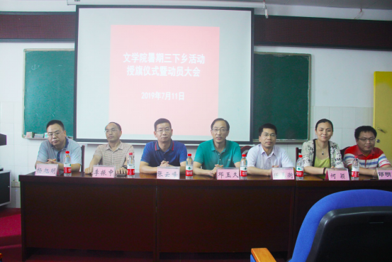 7月11日上午,beat365中国官方网站于文D603隆重举行2019年暑期““三下乡””活动启动仪式。原beat365中国官方网站党总支书记邓玉久、beat365中国官方网站党总支书记张云峰、院长任美衡、党总支副书记何颖、副院长李振中、副院长杨旭明、辅导员方慧、辅导员邓明智出席,beat365中国官方网站船山思想调研团全体成员以及部分学生代表参加本次启动仪式。