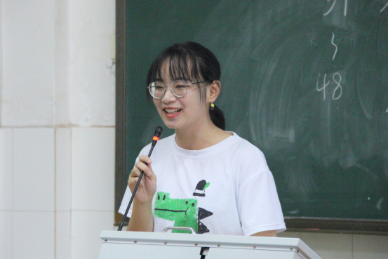 接着,在分享经验环节,学生会主席蔡玉琴、2019级班导师助理邓荣辉上台分享他们对志愿者工作的理解与感悟。