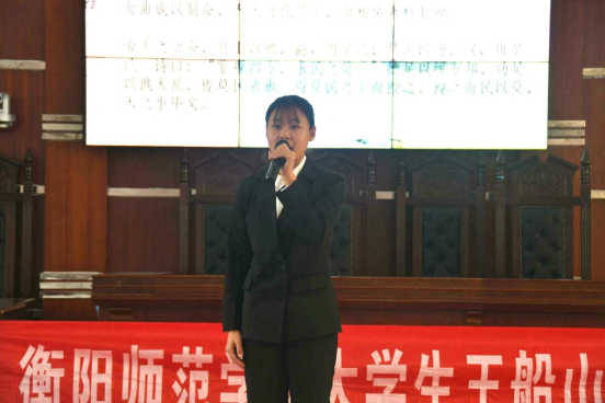 为了庆祝大学生王船山研究学会成立二十周年,弘扬船山精神,增强船山文化的推广与影响力。2021年12月11日15:00,船山学社于东校区模拟法庭举行了“争做船山精神弘扬者,扬船山精神万古长青”主题朗诵决赛。