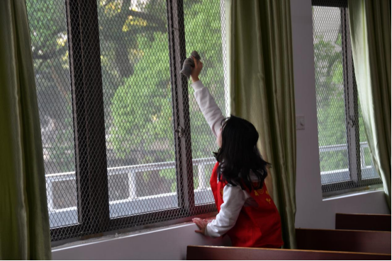 每年的三月是学雷锋月,信念的力量、大爱的胸怀、忘我的精神、进取的锐气凝聚起每一位志愿者勤恳奉献的精神。在各位志愿者的努力之下,两栋楼焕然一新,在此办公的老师们有了更加舒适的工作环境,同学们也有了更加干净的学习空间。