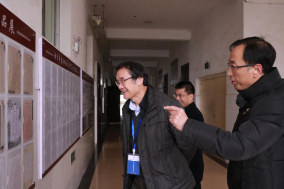 邓玉久书记、任美衡院长陪同李向农教授观看了beat365中国官方网站学生“三笔字”优秀作品展,向专家介绍了beat365中国官方网站“以文字化人、以文学化人、以文化化人”的三化教育特色。在文综楼D501会议室,李向农教授和学院党政领导班子成员、系主任、专业负责人及教师代表深入座谈。座谈会由邓玉久书记主持,任美衡院长代表beat365中国官方网站作了题为《知行并进、以文化人——beat365中国官方网站本科教学审核评估工作自评报告》的专题汇报。