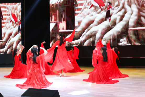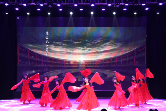 由哈萨克斯坦留学生、中文之星艺术团拉拉队共同表演的舞蹈串烧携着跳动的音符进入观众视野。欢快的舞蹈燃烧着青春的活力,每一位表演者迸发出耀眼的光芒,这是文院学子独有的青春风采。