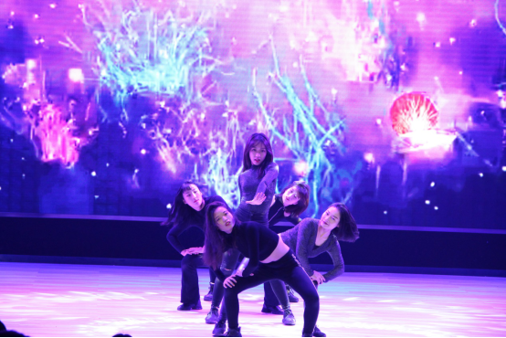 T57舞蹈工作室表演的开场爵士舞《青春就应该这样》瞬间就吸引了观众的眼球。伴随着节奏的律动,舞者们在聚光灯下肆意舞蹈,黑色舞衣神秘而具有吸引力。她们的舞蹈展现出出青春的别样魅力。