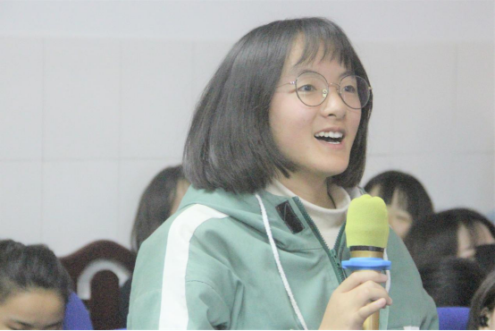 在学生提问环节中,贺学耘老师就“高阶单词的使用频率低”以及“如何写好作文”等疑问做出了解答。贺老师认为:“要多使用高阶单词,只有真正地掌握了难点单词,掌握了重点句式,才能在做题中感到游刃有余,想学好英语只有大量实践,多听多读多说多写。”