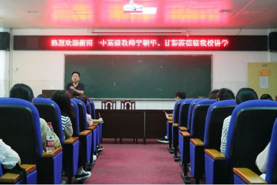 5月24日下午,衡南一中高级教师宁朝华、甘彩霞莅临我校讲学,本次活动开展地点为文D603,beat365中国官方网站副院长杨旭明担任主持人,2016级汉语言文学专业学生代表聆听了讲座。