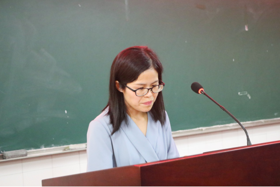 讲座伊始,甘彩霞老师进行发言。甘彩霞老师主要从热爱、积累、创新这三个方面分享了自己对于语文教学的领悟,在谈到对于教学方法的创新时,甘老师指出:“语文教学不是一个人的演出,而是一群人的参与。”她强调,语文老师应该运用随机应变的智慧,让课堂灵动起来,充分调动学生的积极性。
