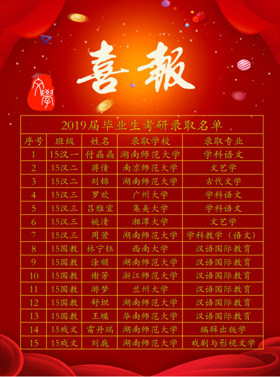 2019届毕业生考研录取名单