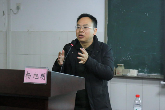 首先,杨旭明教授列举了王船山先生的生平事迹,让同学们对王船山先生有了初步的了解。杨教授从细微之处入手,向同学们全面解读了王船山先生经世致用的思想。他强调,王船山主张学术研究要摒弃空谈,崇尚实务,求是创新,对接社会。