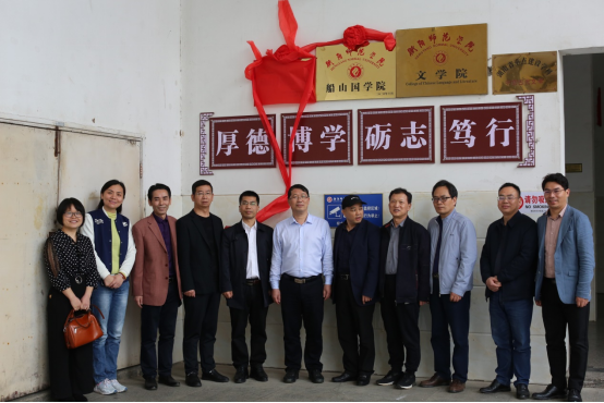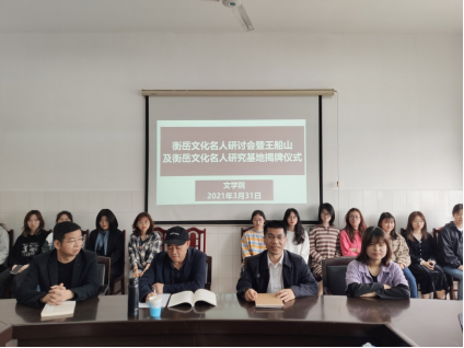 3月31日,衡阳市社科联主席罗东云应邀来beat365官网为衡阳市社会科学重点研究基地“王船山及衡岳文化名人研究基地”举行揭牌仪式。参加揭牌仪式的有校党委书记陈晓飞、主管科研副校长郑金华、科技处处长罗李平、beat365中国官方网站院长任美衡、beat365中国官方网站党总支书记张云峰、beat365中国官方网站副院长杨旭明、beat365中国官方网站党总支副书记何颖,以及新闻与传播学院、音乐学院等二级学院相关领导和基地主要研究人员。