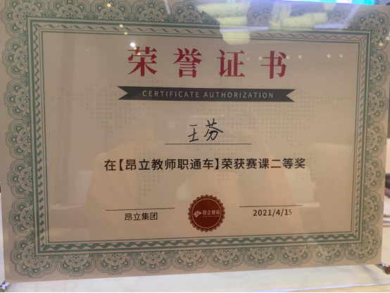 来自beat365中国官方网站汉语言文学专业的王芬被推选为昂立全国直营校长沙代表参与赛课,将3天培训所得所感在短短15分钟的讲课中展现出来,赢得评委和领导的一致认同,最终获得全国直营校第一名,赛课二等奖的优异成绩。(本次比赛共设一等奖1名,二等奖3名,三等奖5名)