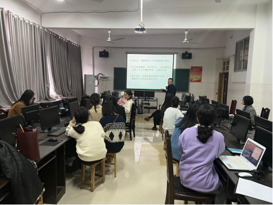 杨旭明教授先为大家解读第三届全国师范生微课大赛优秀作品征集与交流活动的赛事要求,他结合自身指导学生与教学微课制作的经验,提醒同学们们备赛的注意事项,分享了自己指导学生微课获奖作品和赛事中的其他院校的教师的获奖作品,并进行点评,他鼓励同学们们积极参与微课设计制作,不断学习,提升自身的教育技术水平,更好地辅助教学。在讲解中,杨旭明教授结合历届备赛经历,分享微课制作的流程,从选题、脚本撰写、教学设计、素材收集、PPT的制作到后期合成一一进行详细介绍,最后鼓励同学们勇于尝试,不要止于原地,不断提升自我,并现场点评了参赛选手制作的PPT。