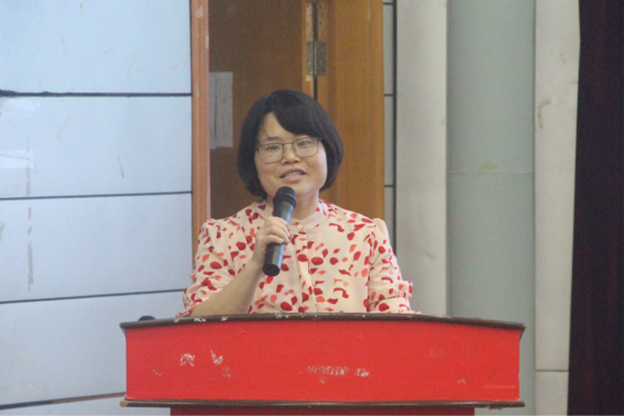 随后,衡阳市朗诵艺术协会主席廖雅琛与现场师生亲密互动,从学习、工作、生活三个方面讲述了自己与朗诵结下的不解之缘,并深情朗诵了汪国真的诗歌《热爱生命》。