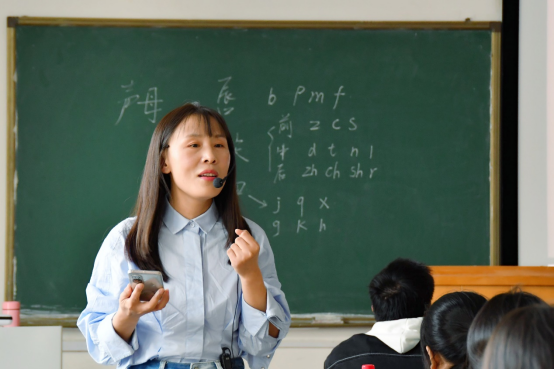 22级地理科学2班全体同学在东校区外语楼408聆听了郭利云老师的教师语言课。郭利云老师在课堂上生动地讲解了声母的发音特点并对学生进行了辨正练习。她强调语境对于声母发音的重要作用,设置语境来区分句词不同音。她也注重与学生的互动,采取绕口令、看视频等多种新颖的形式吸引学生的注意力。
